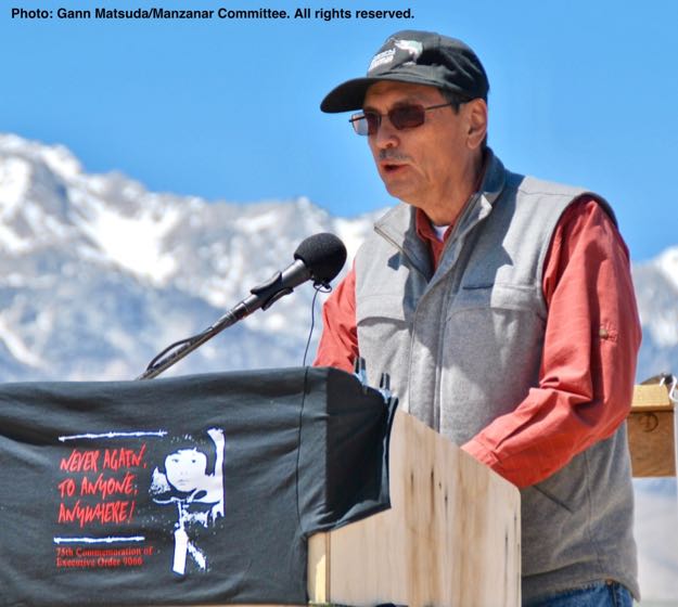 LEAD PHOTO: Manzanar Committee Co-Chair Bruce Embrey addresses the crowd during the 48th Annual Manzanar Pilgrimage on April 29, 2017 at the Manzanar National Historic Site. Photo: Gann Matsuda/Manzanar Committee.